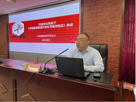 为全方位提升宝鸡市场监管系统执法水平,邀请了陕西睿普律师事务所律师邵刚对《市场监管行政处罚程序规定》进行了深度全面解读,精准剖析了市场监管执法过程中容易引发的风险点,为干部们呈现了一堂生动实用的法治课,进一步推动系统干部认真学法、慎重用法、规范执法。