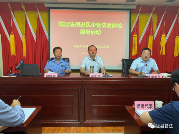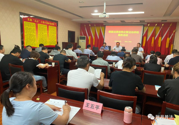 2023年8月24日,陇县司法局、陇县工商联联合开展法律进民企暨法治体检活动,进一步推动营商环境突破年活动走深走实,取得实效。