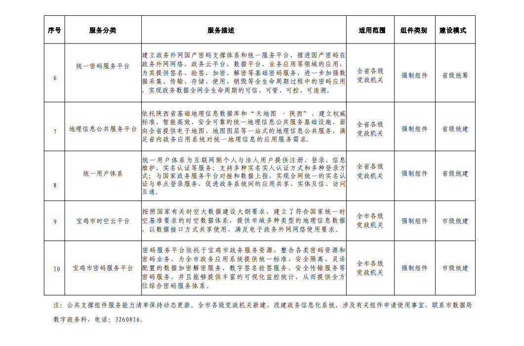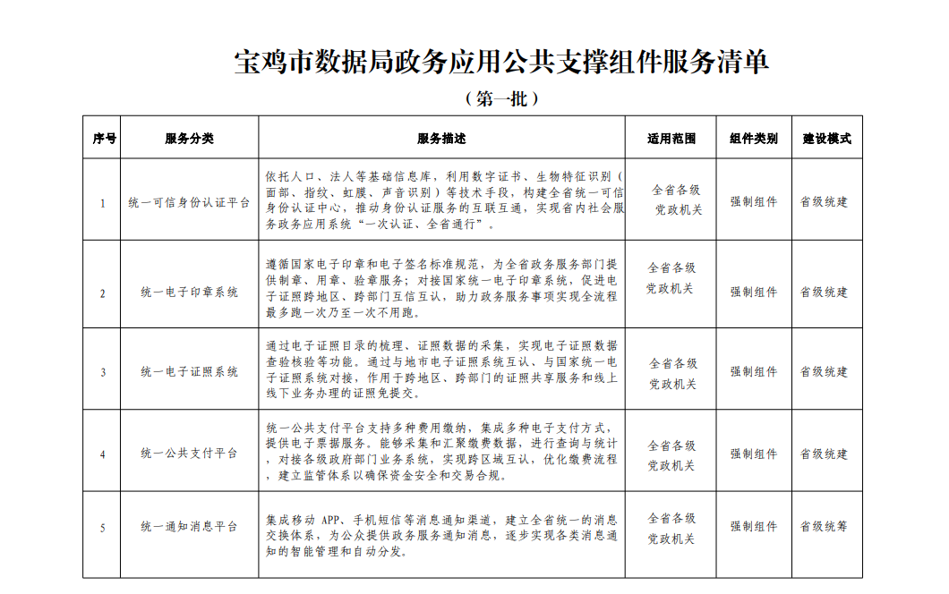 宝鸡市数据局政务应用公共支撑组件服务清单(第一批)