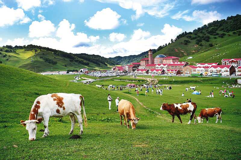游客在位于宝鸡市陇县的关山草原景区游览(2024年8月3日摄)。新华社记者 邹竞一摄