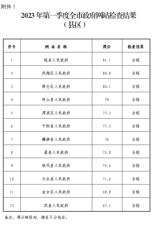 附件:1.2023年第一季度全市政府网站检查结果(县区)