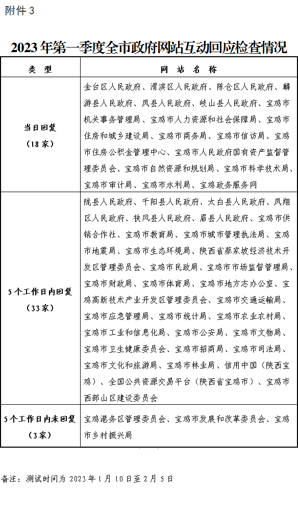 3.2023年第一季度全市政府网站互动回应检查情况