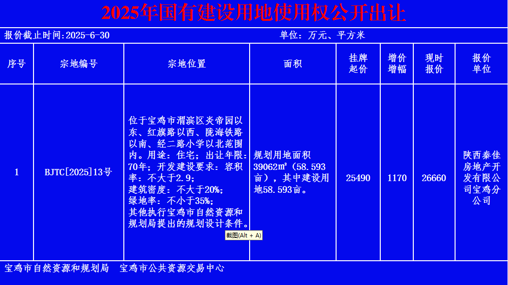 2025年国有建设用地使用权公开出让挂牌公示