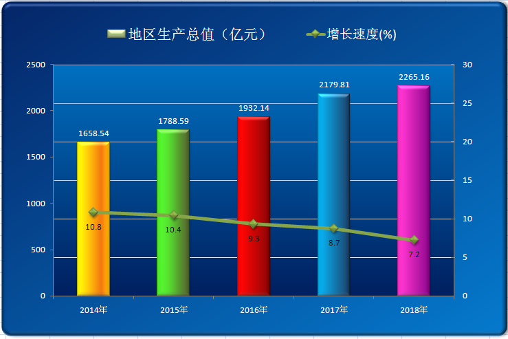 2014-2018年全市地区生产总值及增速