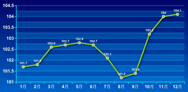 2019年全市居民消费价格月度指数(CPI)(%)