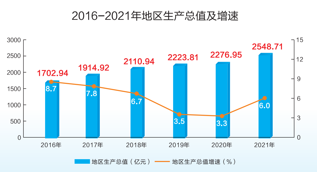 2016-2021年地区生产总值及增速