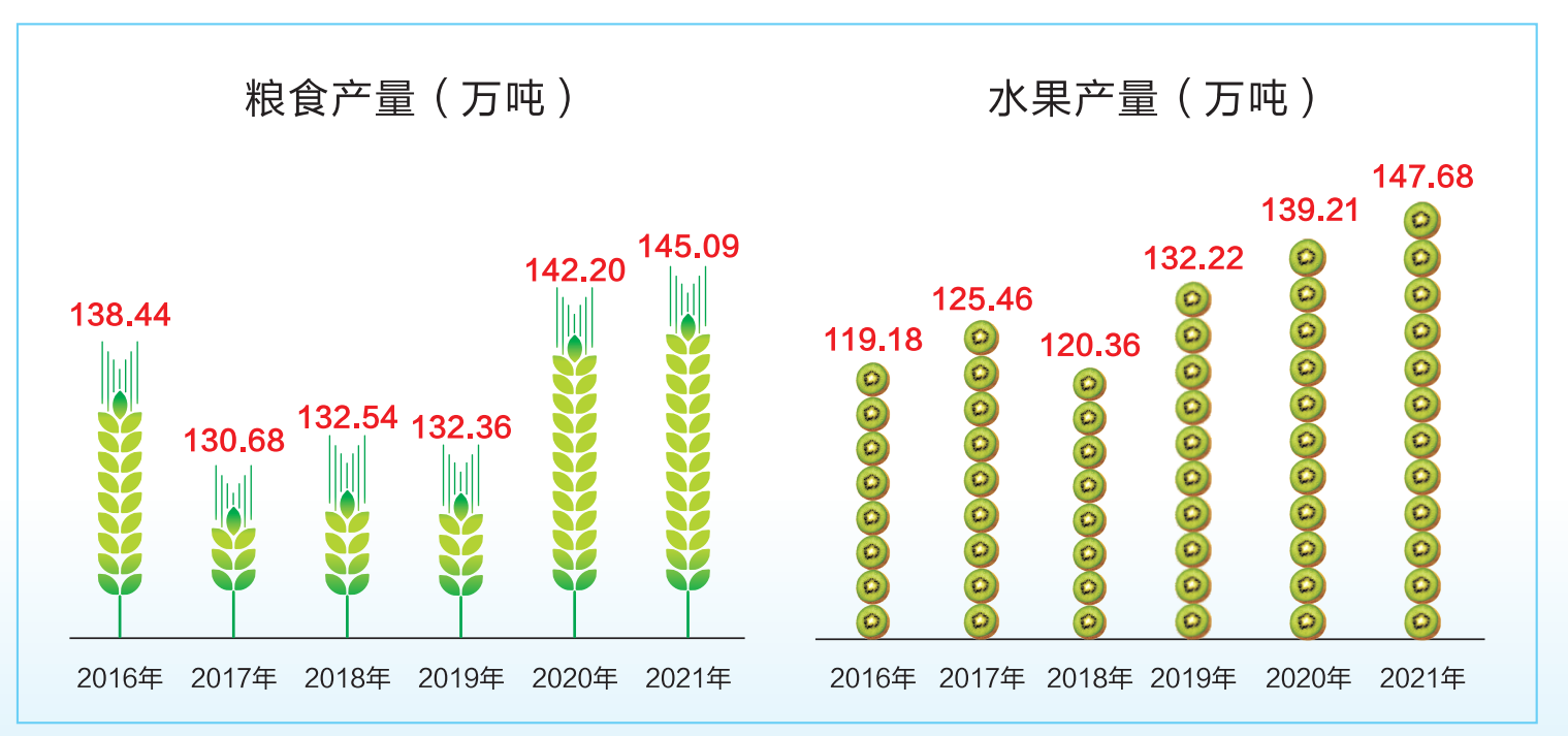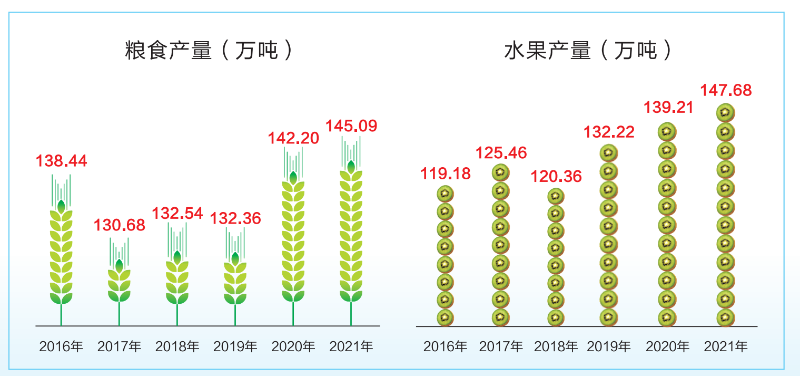 2016-2021年粮食产量及水果产量