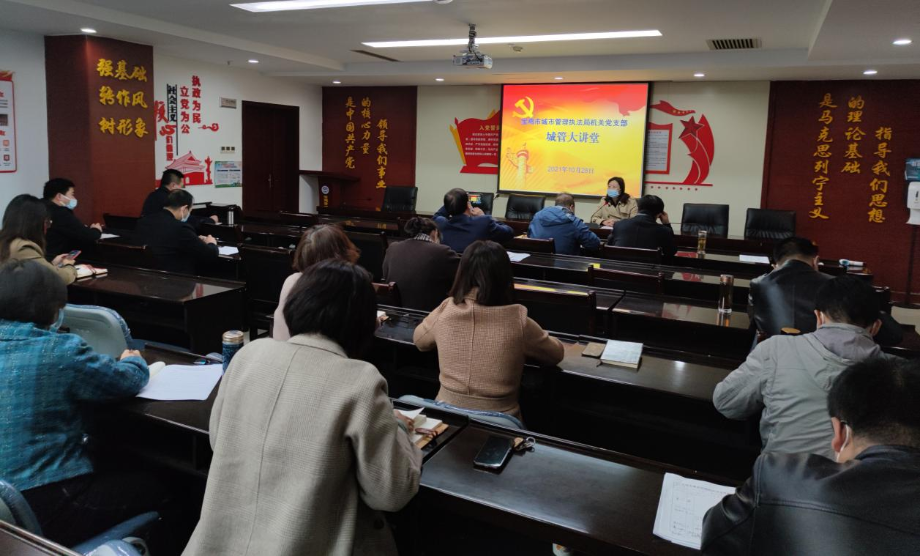 2021年10月28日下午,市城市管理执法局机关党支部组织开展“城管大讲堂”(第一期)活动,局机关党员干部40余人参加活动。