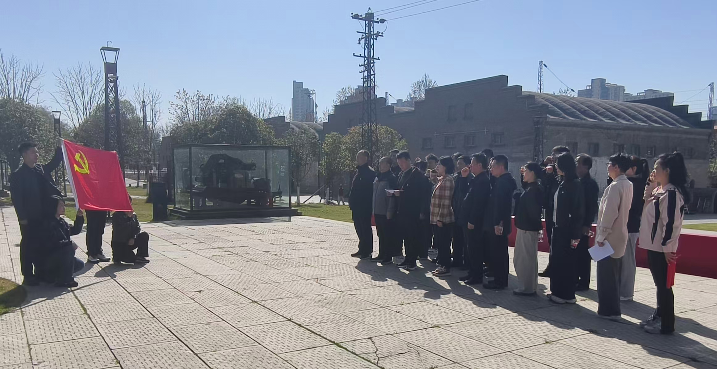 活动伊始,全体党员干部佩戴党员徽章,在申新办公楼旧址前集结,面向鲜红党旗肃立,庄严举起右拳重温入党誓词,铿锵有力的誓言回荡在工业遗址间,为整场活动奠定了庄重深刻的基调。