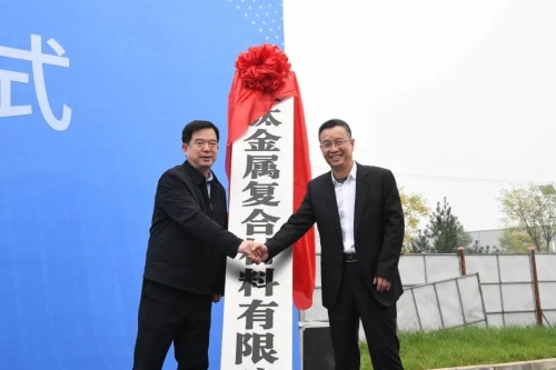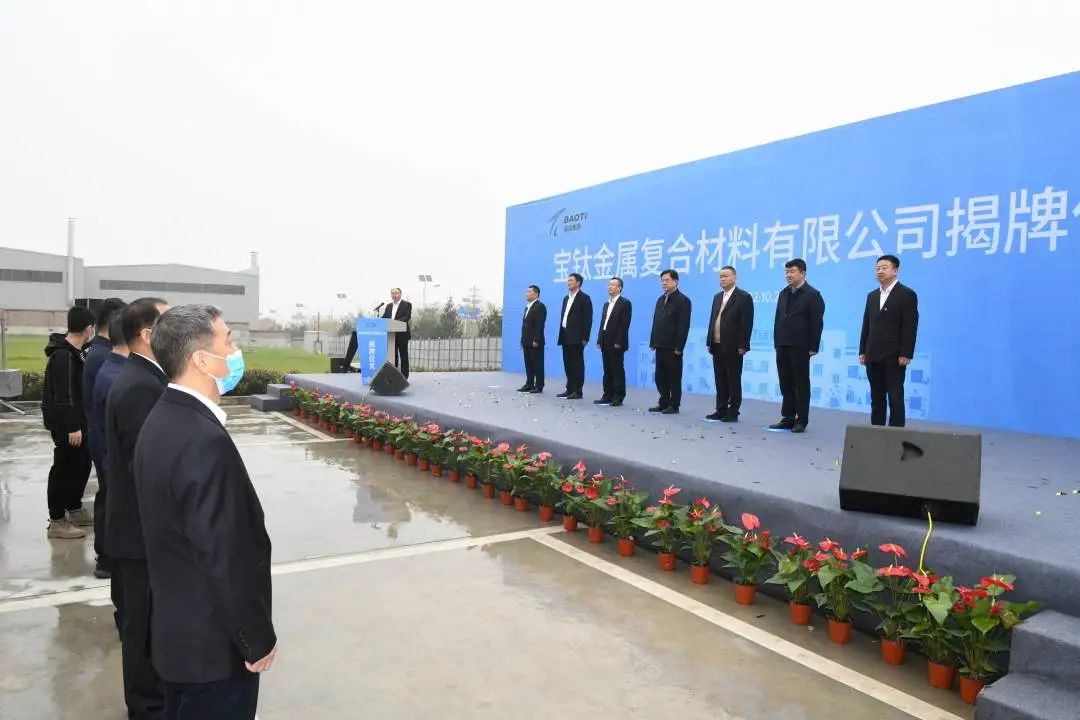 10月26日,宝钛金属复合材料有限公司揭牌仪式在宝钛眉县产业园举行。公司党委副书记、总经理雷让岐与宝鸡市工信局局长巨绪昌共同为复合材公司揭牌;公司领导王建超、和平志出席仪式;眉县县长张小平、公司副总经理陈战乾先后致辞;复合材公司总经理张杭永介绍公司情况;复合材公司董事长邵朝远主持仪式。