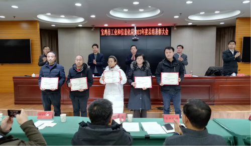 会议通报表彰了2023年度局属业单位目标责任考核先进单位、先进科室、先进工作者、优秀党组织、优秀共产党员及优秀党务工作者,并向先进单位和个人颁发奖牌及荣誉证书。局党组书记、局长对2023年度工作进行了全面回顾总结,并对2024年重点工作进行安排部署,希望大家发扬成绩、锐意进取,为工业发展再建新功!
