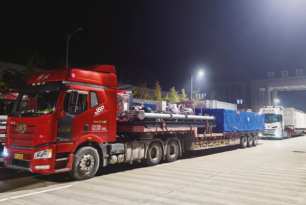 10月14日凌晨,在宝鸡海关现场监管和服务保障下,这批货值超过4500万元的钻机设备在宝鸡综合保税区快速完成通关查验。宝鸡综合保税区事务中心全程提供了高效的协调与服务保障,确保了设备发运环节顺畅无阻。随即,由20辆重型卡车组成的车队整齐列队,整装发运,经陆路运往上海港。