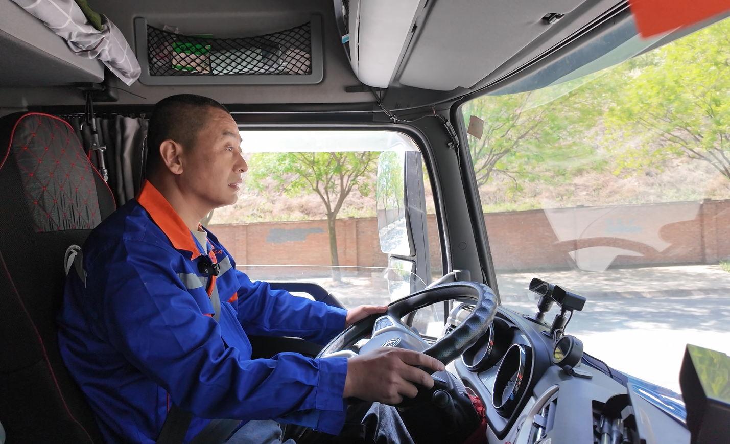 危货运输的特殊性决定了王彦军的生活节奏——以车为家,与路为伴。装货时间不固定,一声“好的,马上出发”便匆匆启程;为了按时交货,他经常吃睡在驾驶室,风雨无阻。夏天,驾驶室闷热难耐;冬天,寒风刺骨,但他从未抱怨,始终坚守岗位。常年与家人聚少离多,他却说:“车在哪儿,责任就在哪儿。把危险品安全送到,才能安心回家。”