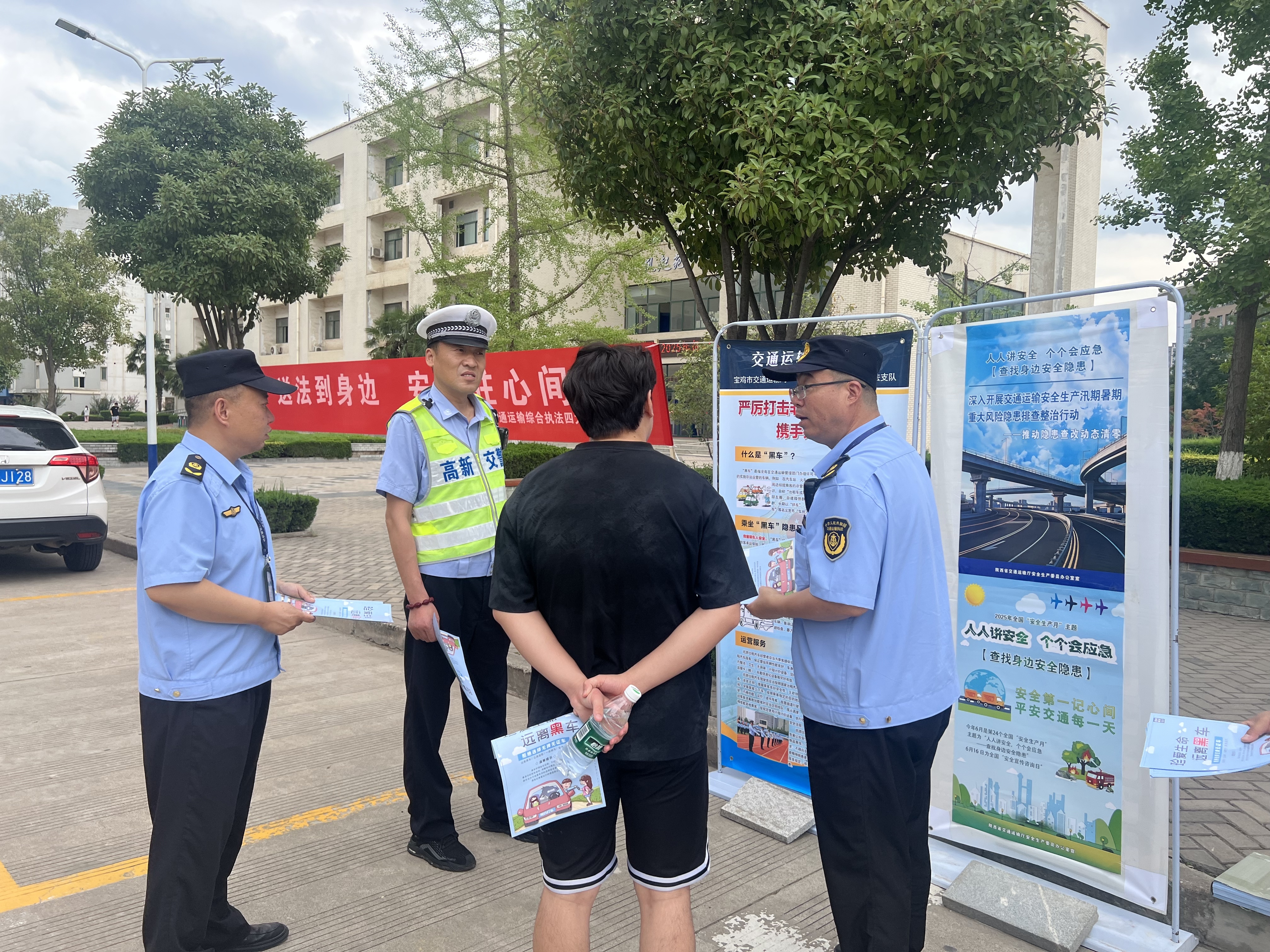 6月19日,四大队联合辖区交警走进宝鸡职业技术学院,开展“送法到身边,安全驻心间”主题宣传活动,以法治护航校园安全,为师生筑牢出行安全防线。