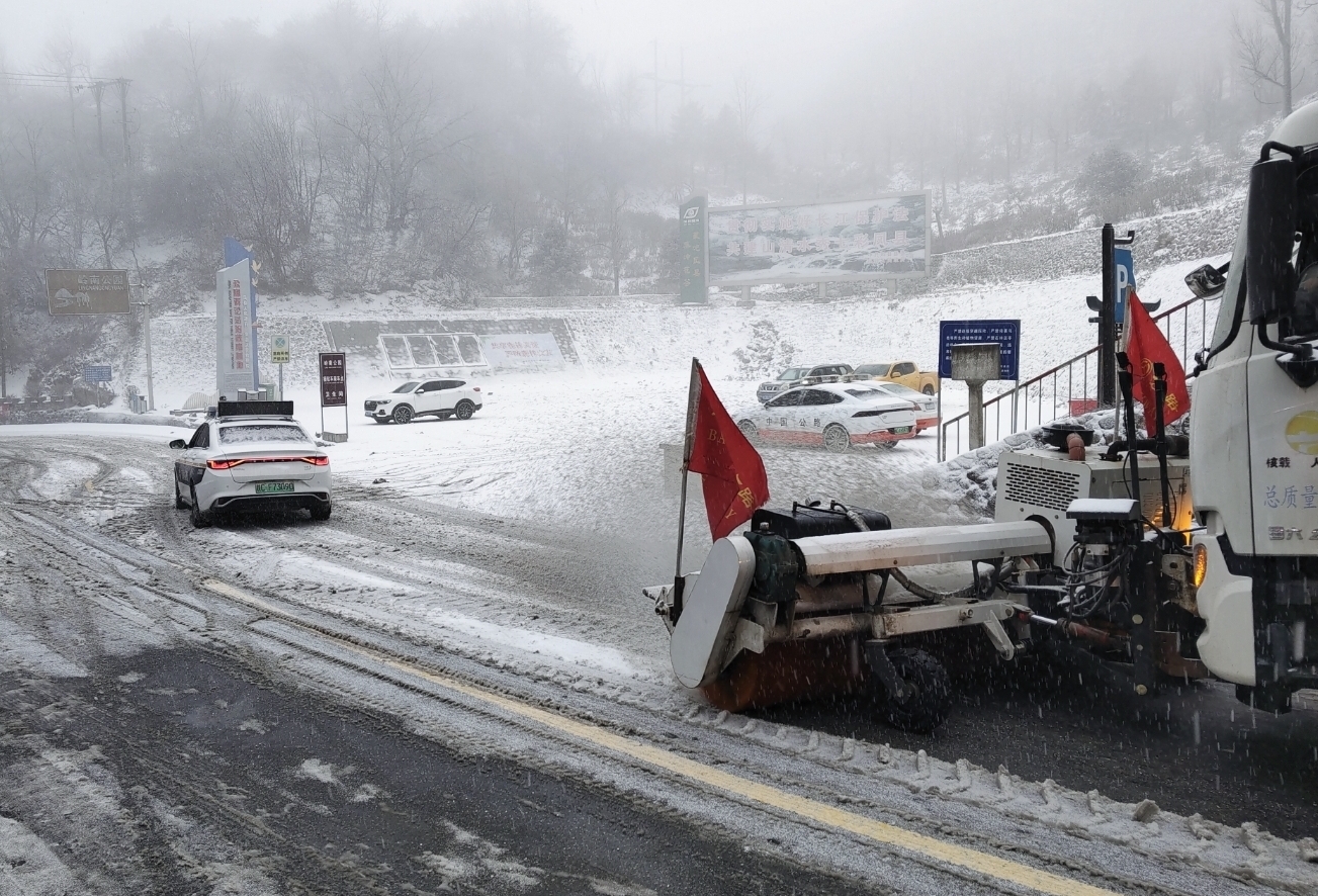 太白公路管理段提前制定应急预案,备足应急资源,科学划分作业区域,统筹调度人力。针对积雪结冰严重的秦岭梁、五里坡等关键点位,采取“三机联动、分路推进”的作业模式,将除雪铲、除雪滚刷与融雪剂抛洒机有机组合,通过除雪铲破冰除厚雪、除雪滚刷清理残余积雪,最后以融雪剂防止路面二次结冰,形成“破冰-扫雪-融雪”科学高效的作业流程,优先清理主行车道,逐步向应急车道和路肩延伸,确保除雪作业无死角、无盲区。累计出动机械设备8台,人员20人次,抛洒融雪剂6吨。(太白公路管理段 贾艳艳)