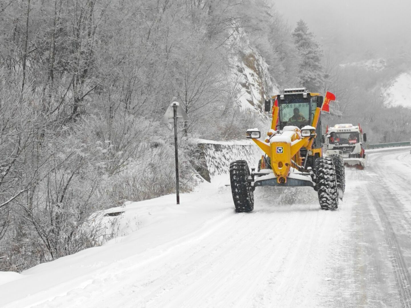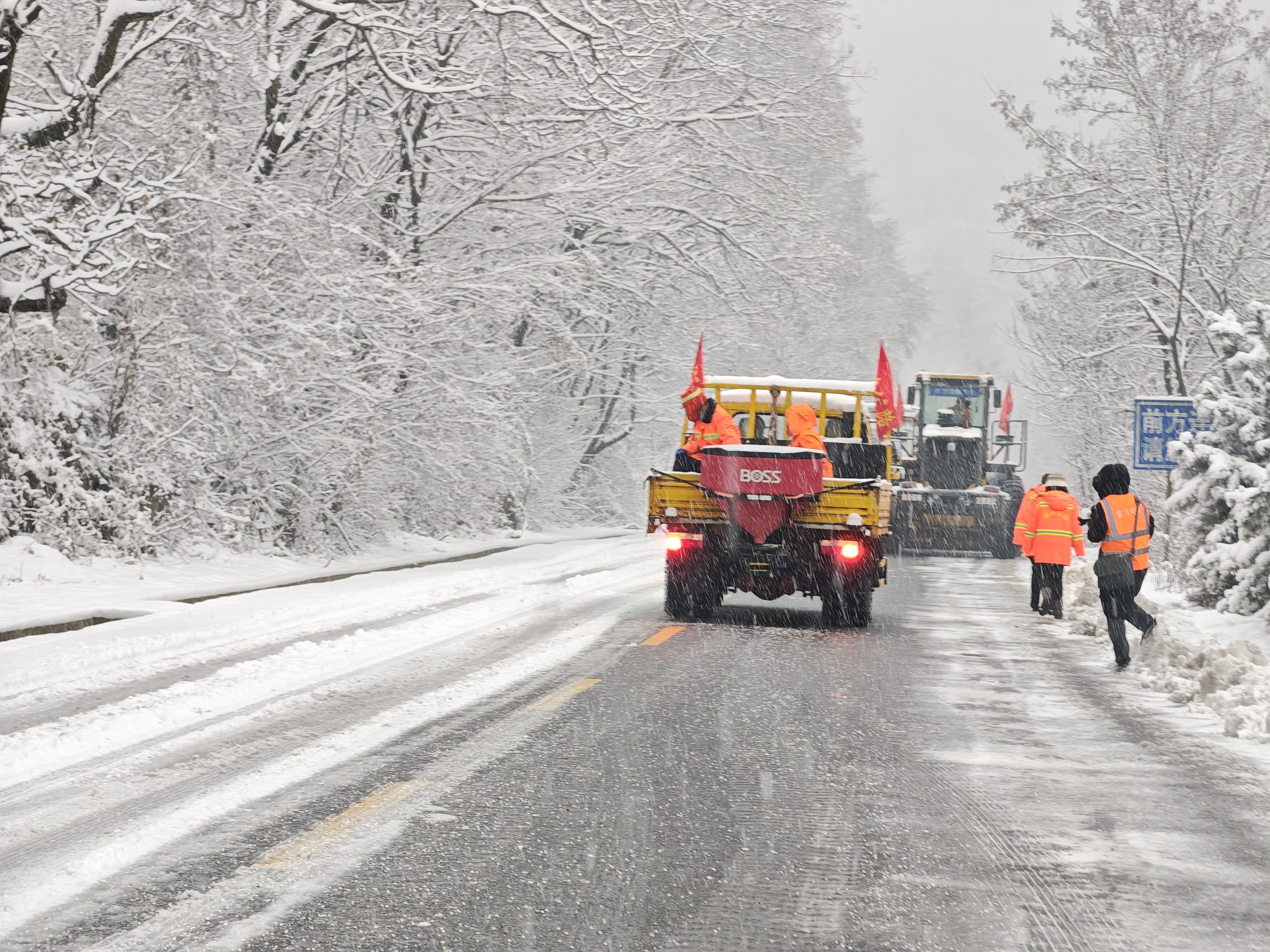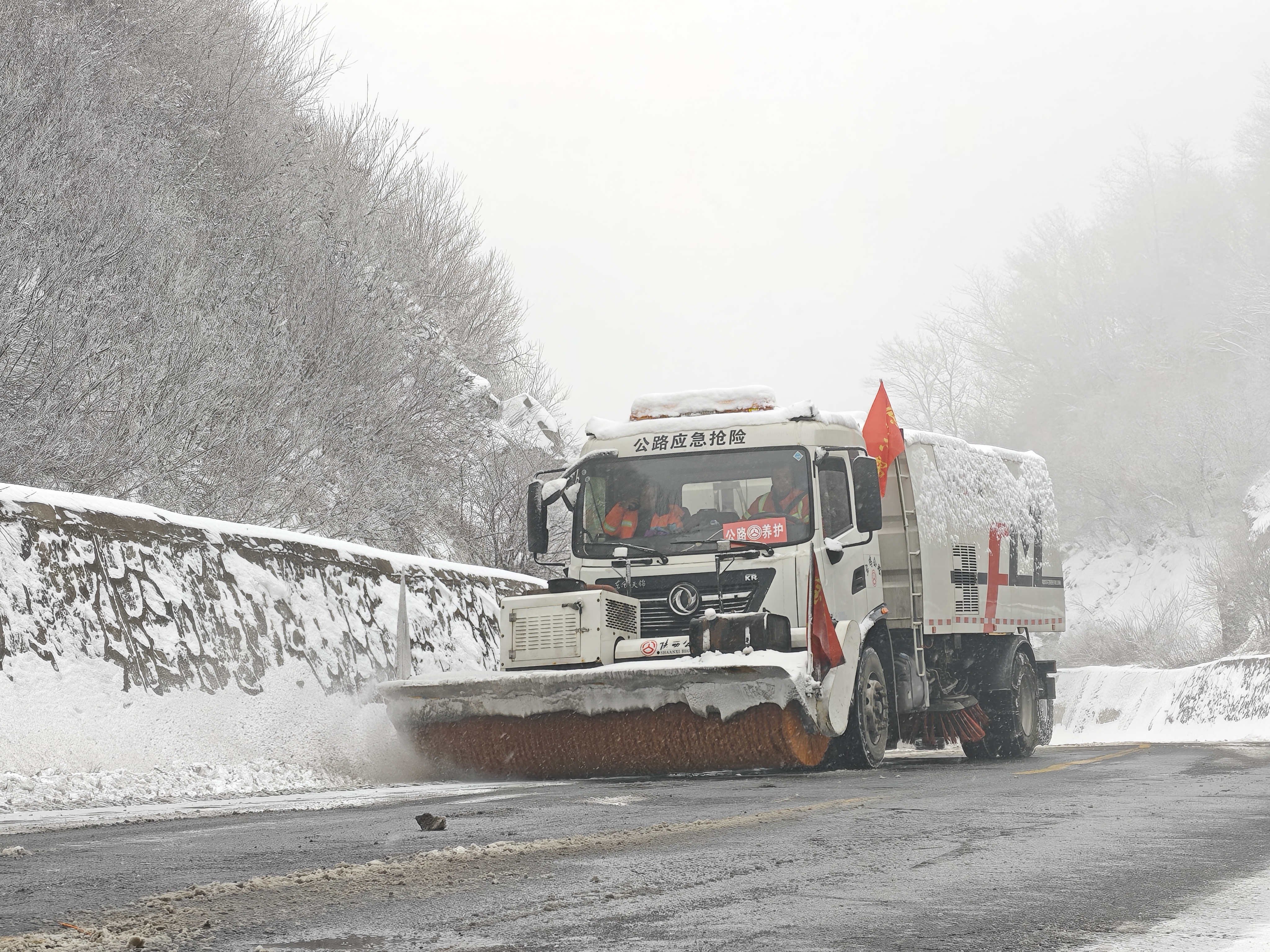 金渭公路段组织养护人员对易积雪结冰、急弯陡坡、隧道桥梁等路段抛撒融雪剂。同时,该段采用人工与机械协同作业的方式,及时清除路面积雪积冰,路保人员做好交通疏导,养护人员及时对被大雪压倒倾斜的树木进行扶正,确保道路安全畅通。此外,该段加大路网实时监测力度,精准掌握管养路段路况,积极与各部门沟通联动,及时发布路况信息。