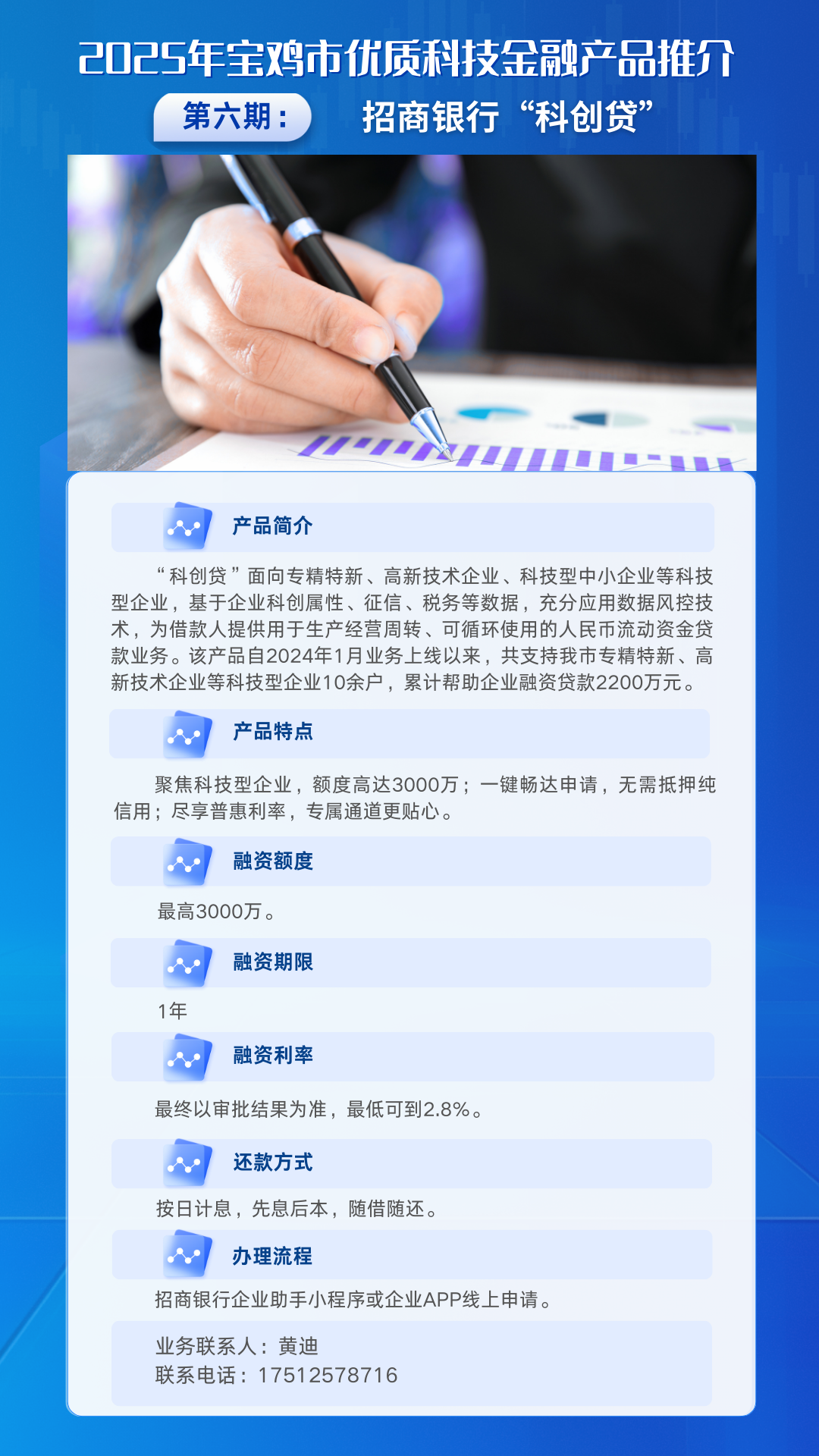 为进一步推动科技与金融深度融合,健全金融支持科技创新体系,深化政银企协同机制,精准对接科技型企业融资需求,宝鸡市科技局特别策划推出优质科技金融产品专题系列。本系列精选金融机构特色产品,旨在为各类科技创新主体提供金融信息参考,促进金融资源与市场主体需求高效匹配。后续将陆续推送系列产品介绍,详细列明各产品特点及申请要求,敬请持续关注。