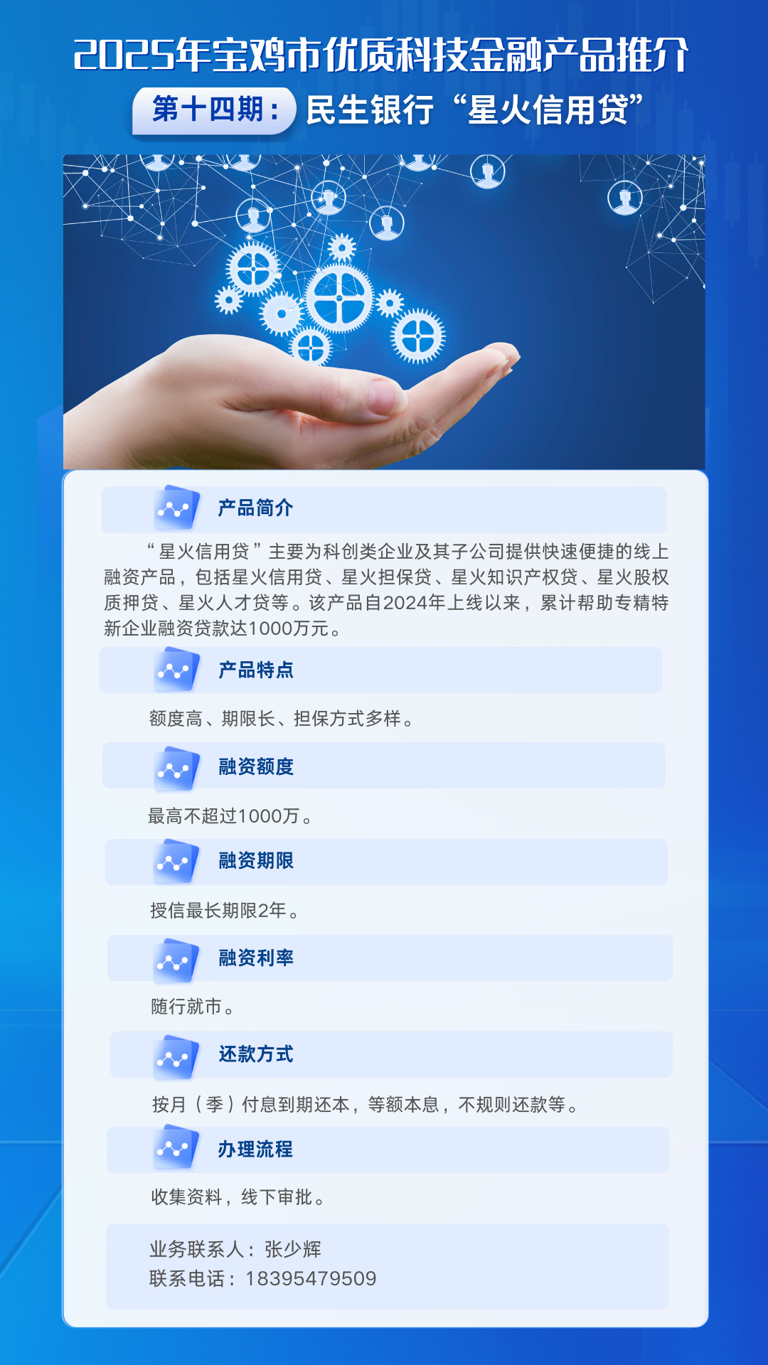 为进一步推动科技与金融深度融合,健全金融支持科技创新体系,深化政银企协同机制,精准对接科技型企业融资需求,宝鸡市科技局特别策划推出优质科技金融产品专题系列。本系列精选金融机构特色产品,旨在为各类科技创新主体提供金融信息参考,促进金融资源与市场主体需求高效匹配。后续将陆续推送系列产品介绍,详细列明各产品特点及申请要求,敬请持续关注。