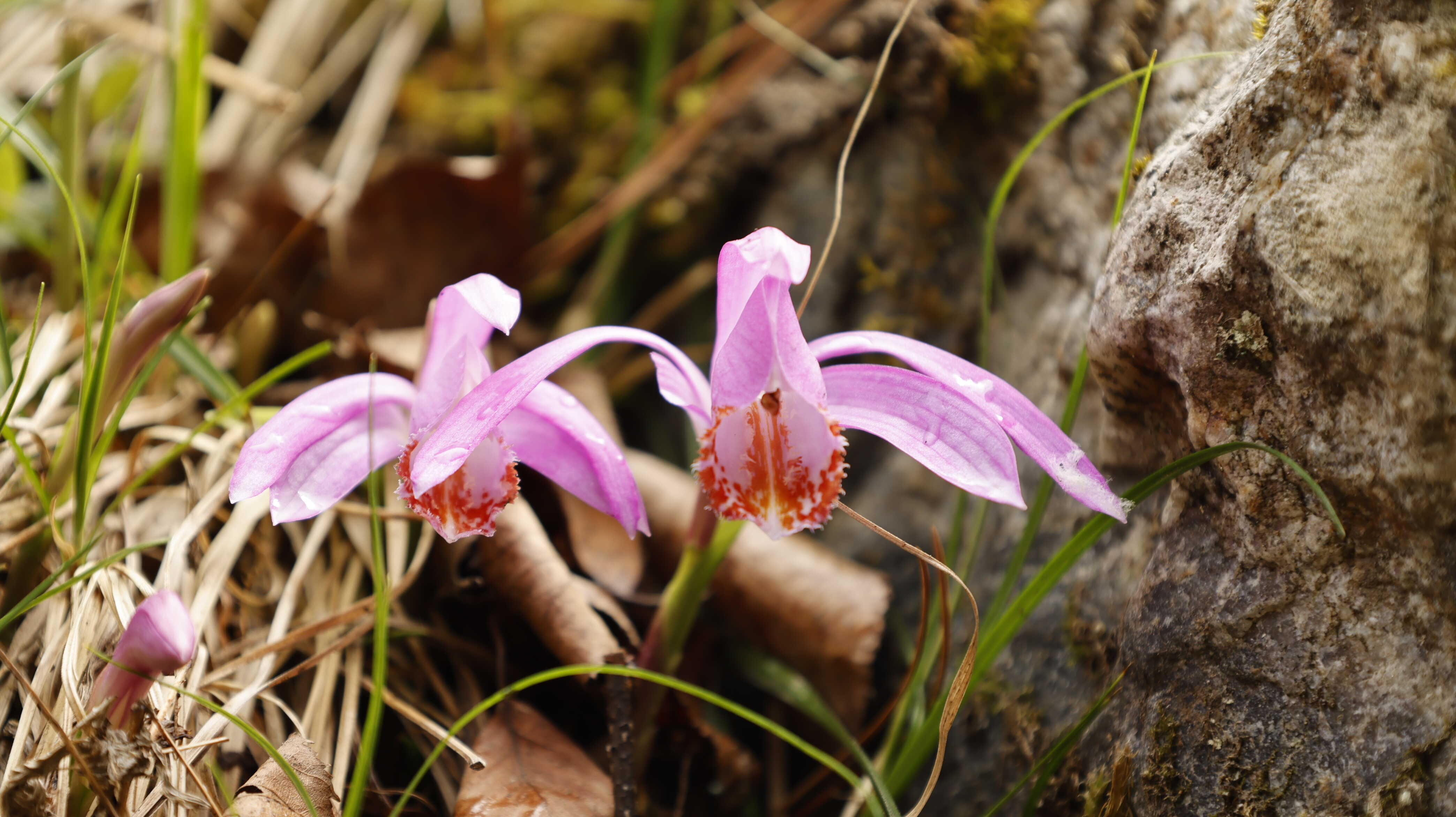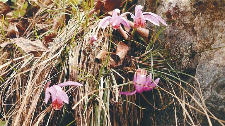 独蒜兰Pleione bulbocodioides (Franch.) Rolfe,为兰科独蒜兰属多年生草本植物,在秦岭林区多生长于海拔900m~3000m的密林下或沟谷旁腐殖质丰富的土壤中,或苔藓覆盖的岩石上。花期为4月至6月,果期为7月至8月,具有较高的科研和观赏价值,因其假鳞茎形似蒜头而得名,是我国特有的珍稀植物,被《国家重点保护野生植物名录》列为国家二级重点保护野生植物。
