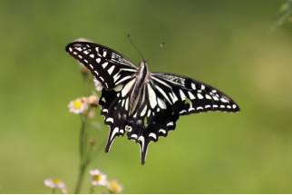 成虫翅膀金黄底色带黑色斑纹,翅展 8-10 厘米,飞行时斑纹清晰可见;幼虫绿色,低龄期体色和形态与鸟类粪便相似,具有伪装效果。高龄时体背有黄白色斜纹,体表光滑,爬行时身体呈弓形。幼虫特别会“伪装”。5-6 月、7-8 月幼虫疯狂啃叶,严重时能把整棵树的叶子吃光。