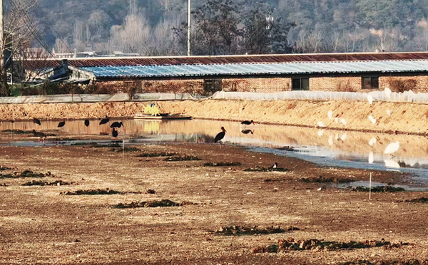 12月5日,陕西省宝鸡市岐山县蔡家坡镇胡新村蔡洋稻田蟹养殖基地迎来了一群特殊的“客人”——7只国家一级保护动物朱鹮与10余只国家一级保护动物黑鹳,同时现身基地周边的湿地觅食。当天,蔡家坡镇安乐村村民蔡洋用镜头记录下了这一幕。
