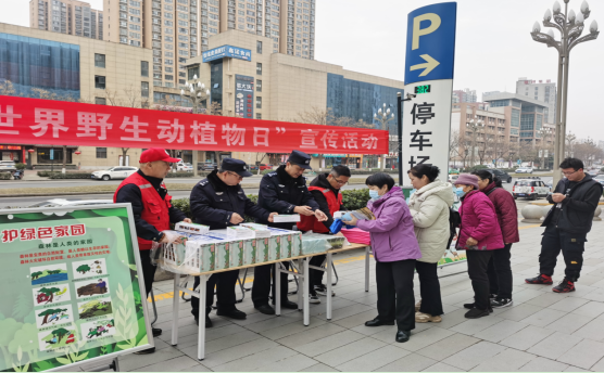 凤翔区林业局:3月4日,组织凤翔区林政管理所在区政府大门口和城墙遗址公园开展“世界野生动植物日”科普宣传活动。通过悬挂横幅、布设展板、现场讲解、播放科普法规音视频、发放《中华人民共和国野生动物保护法》《中华人民共和国森林法》《野猪科普知识和安全防范手册》和今年“世界野生动植物日”倡议书等宣传资料的方式进行宣传,现场发放各类宣传资料5000余份,有效普及了相关科普知识,提高了广大群众保护野生动植物的意识,也展示了全区野生动植物保护工作成果。
