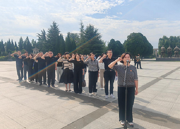 走进扶眉战役烈士陵园,苍松挺拔,翠柏林立,巍然耸立的扶眉战役烈士纪念碑映入眼帘,让人肃然起敬。巨大的花岗岩石碑无声地纪念着在解放战争中西北战场上最大的一次战役——扶眉战役牺牲的3000余名革命先烈。大家心怀崇敬仔细瞻仰烈士纪念碑,支队领导向革命先烈敬献花篮、全体党员重温入党誓词。随后,全体干部参观了扶眉革命纪念馆,追寻革命先烈足迹,缅怀革命先烈的丰功伟绩。