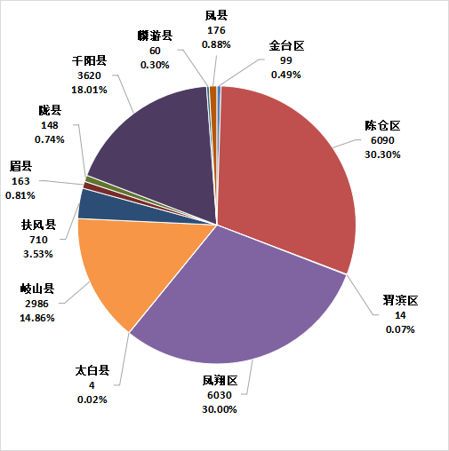 据市园艺站调查汇总数据,当旬全市蔬菜在田面积11.63万亩,同比增长68.55%,日均供应量约2010吨,同比增长22.05%。主要集中在陈仓、凤县、千阳、岐山等县区的蔬菜基地,产量占比如下: