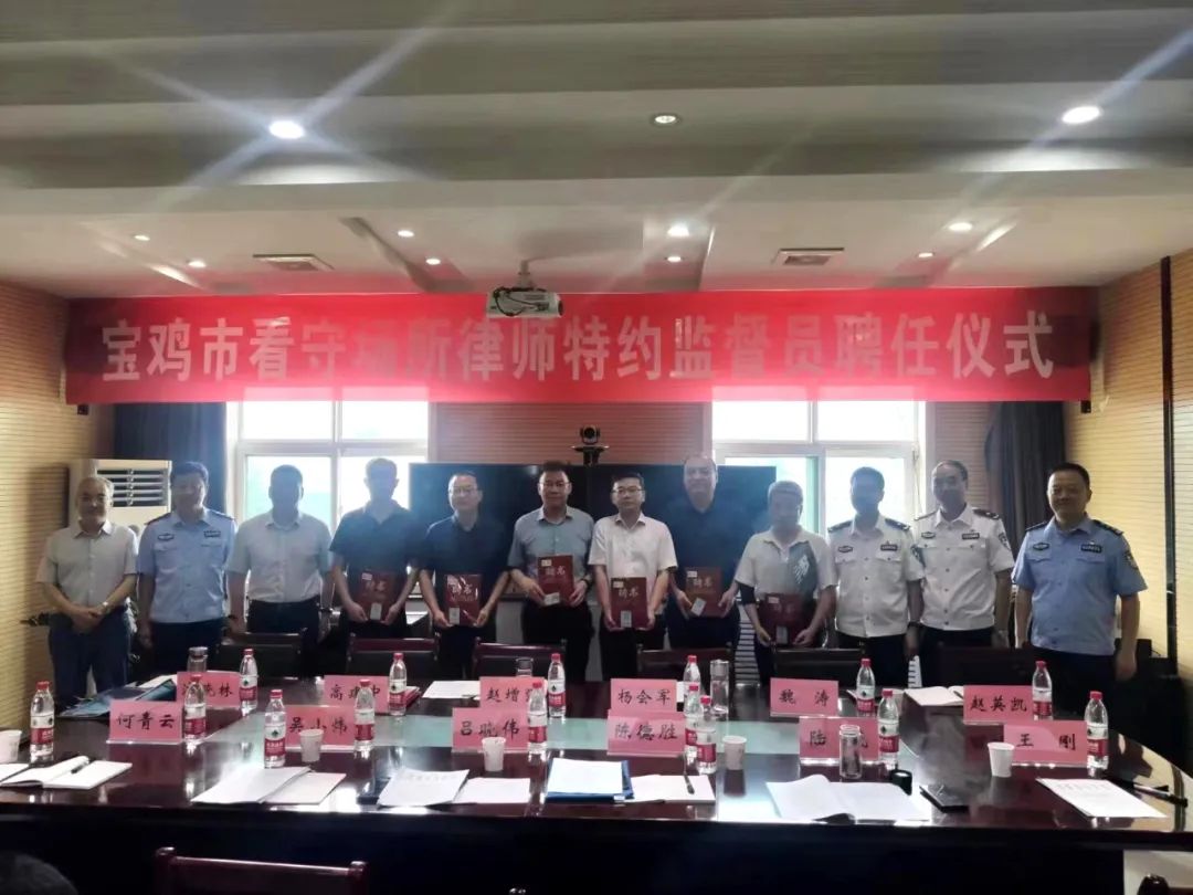 2023年8月16日上午,宝鸡市公安局、宝鸡市司法局、宝鸡市律师协会在渭滨区看守所联合召开聘请全市看守场所律师特约监督员会议。宝鸡市司法局党组成员、副局长赵增强,宝鸡市公安局党委委员杨会军等出席会议。