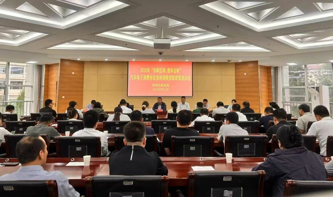 9月10日,市商务局召开2025年“乐购宝鸡 惠享金秋”汽车电子消费券发放和消费贷款政策培训会。市商务局副局长黄宁安、相关业务科室负责人,金台区、陈仓区、高新区商务主管部门分管负责同志,65户汽车销售企业负责人参加会议。