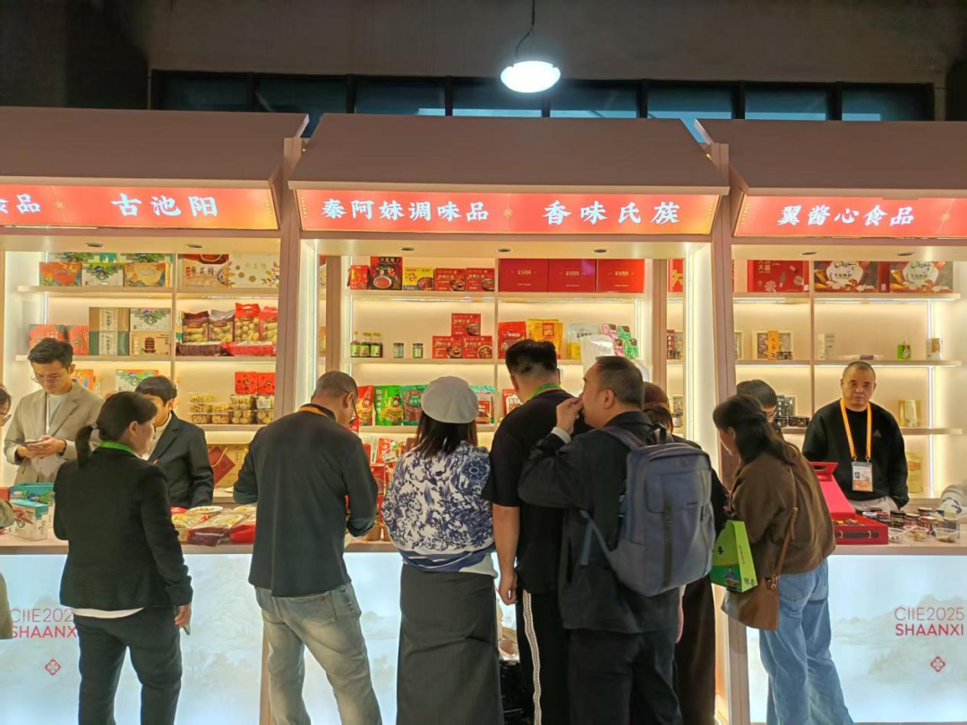 在陕西馆展区,我区陕西西凤酒股份有限公司与宝鸡德信食品公司分别设立展台,开展品牌宣传与产品推广,吸引了众多国内外客商和观众驻足交流、品鉴洽谈。西凤酒系列产品不仅彰显了卓越品质与深厚文化底蕴,也成为展示凤翔风采、打造“陕西名片”的重要窗口。德信食品公司旗下“秦阿妹”牌调味品,凭借独特的陕西西府风味赢得消费者青睐,现场品鉴与采购洽谈气氛热烈。