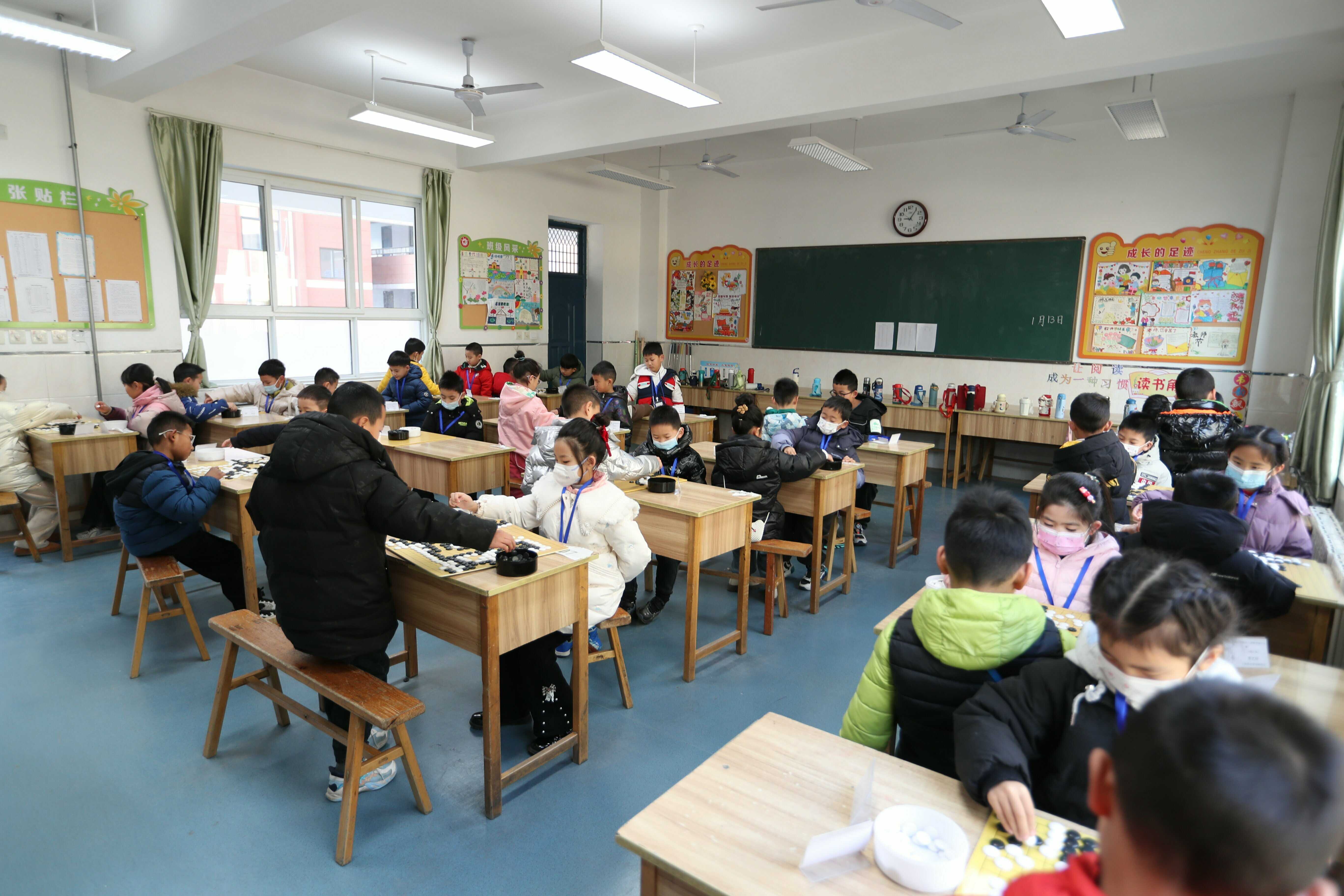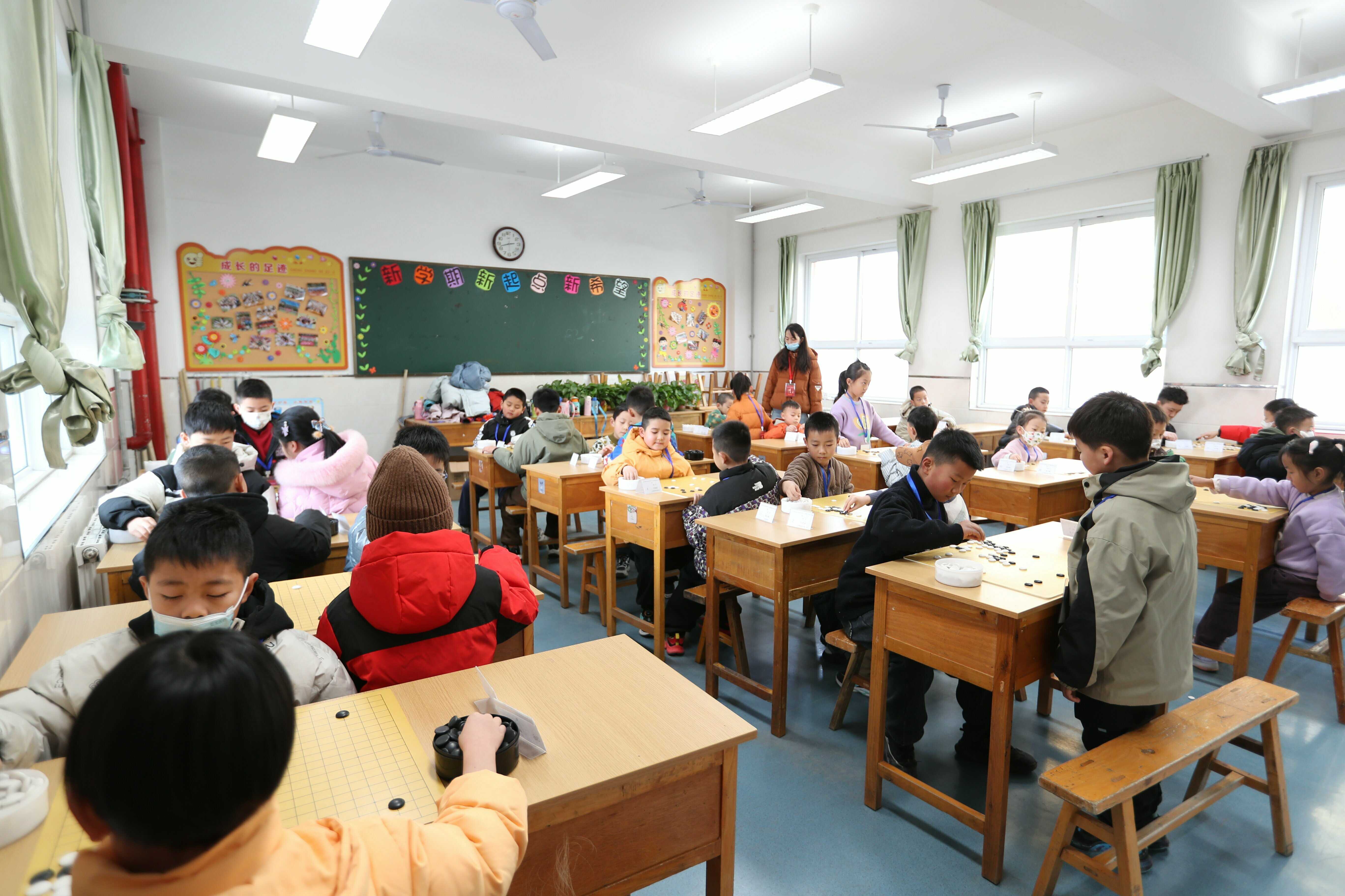 比赛现场,小棋手们两两相对而坐,气氛紧张而热烈。黑子如夜空中的繁星点点,白子则如晨曦中的露珠晶莹。他们或低头沉思,或果断落子,每一步都凝聚着智慧与勇气。棋局之间,孩子们展现出了超越年龄的沉稳与自信,举手投足间尽显大将风范。