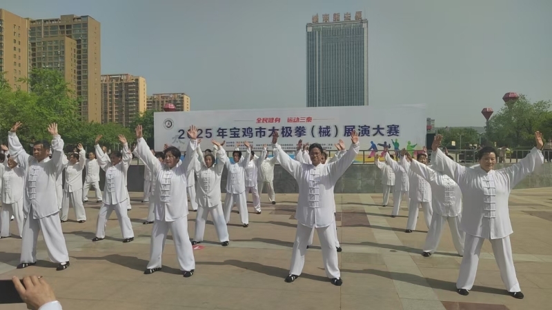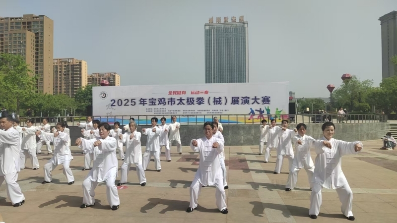 4月19日, “全民健身、运动三秦”2025年宝鸡市太极拳(械)展演大赛在高新广场举行。本次大赛由宝鸡市太极拳协会主办,宝鸡海室假日酒店、海棠干湖度假酒店等多家单位协办,吸引了来自全市各站点的20支队伍、500多名选手参与。