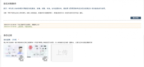 1.进入考生网上报名系统,查看自己的报名信息,在报名信息处,点击“上传相关材料”按钮。