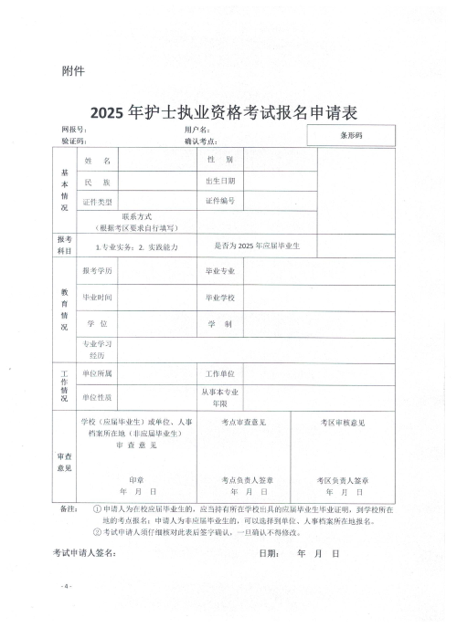 4.报考人员还需提交《报名申请表》,由各报名点统一收集保管(存档时间为1年)。