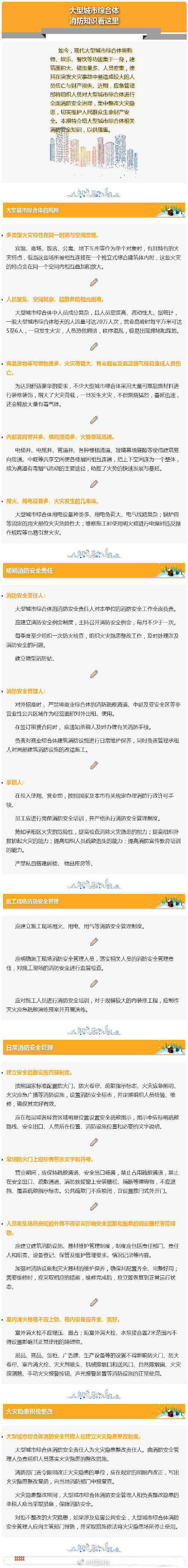 大型商业综合体是人们最常去的场所之一,吃喝玩乐样样都有,但是,现代大型综合体将购物、娱乐、餐饮等功能集于一身,具有体量大、建筑面积广、储货量多人员密度集中等特点,一旦发生火灾危害极大。以下大型综合体综合体消防知识你必须要掌握哦!
