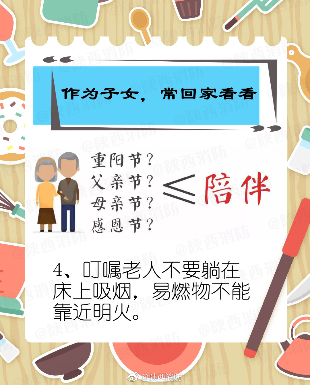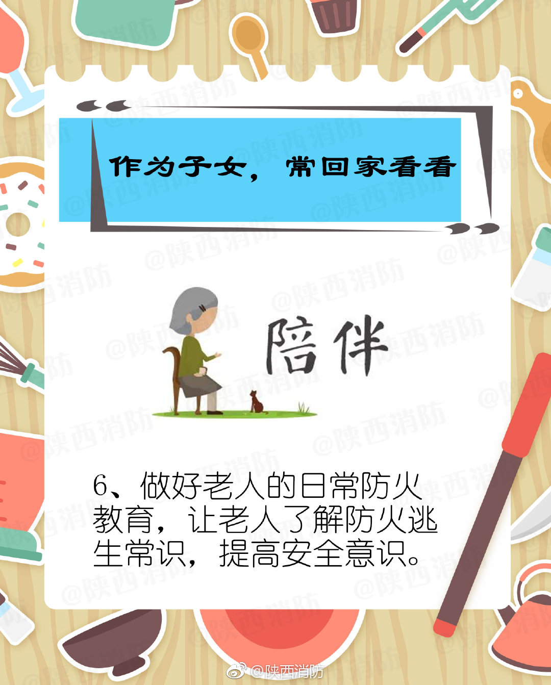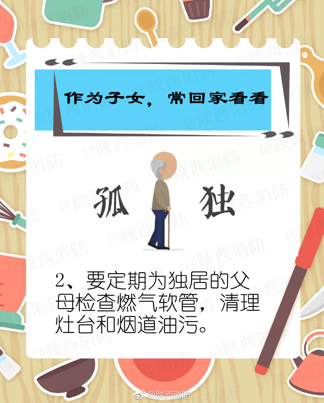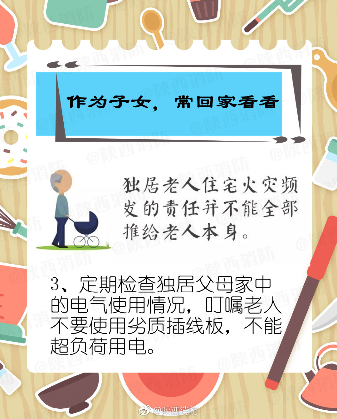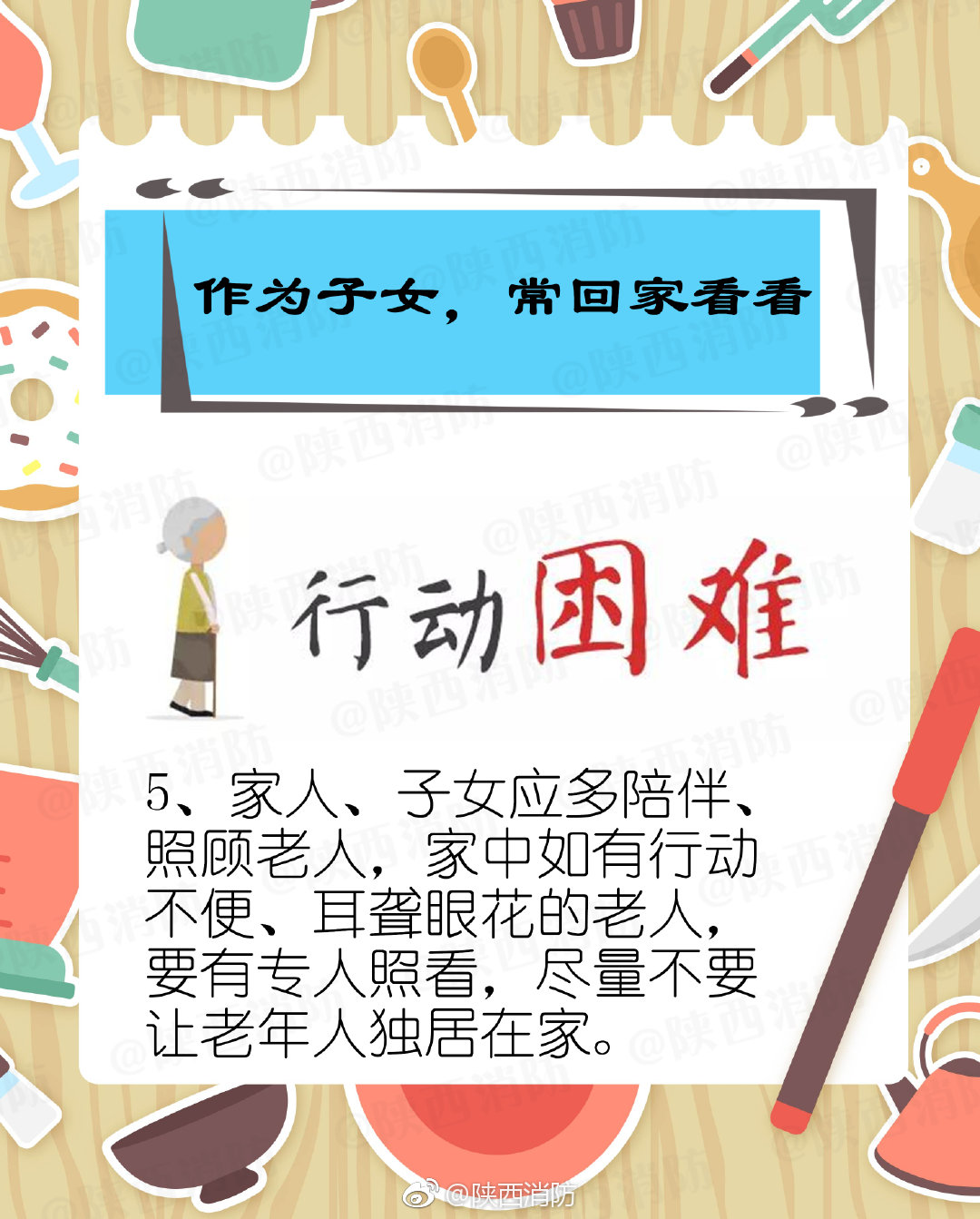 独居老人大多存在这样或那样的不便之处,如:行动困难、记性差等,时常因用火不慎等原因引发火灾,极易导致小火亡人的事故。宝鸡消防提醒大家,常回家看看,关爱家里的老人。