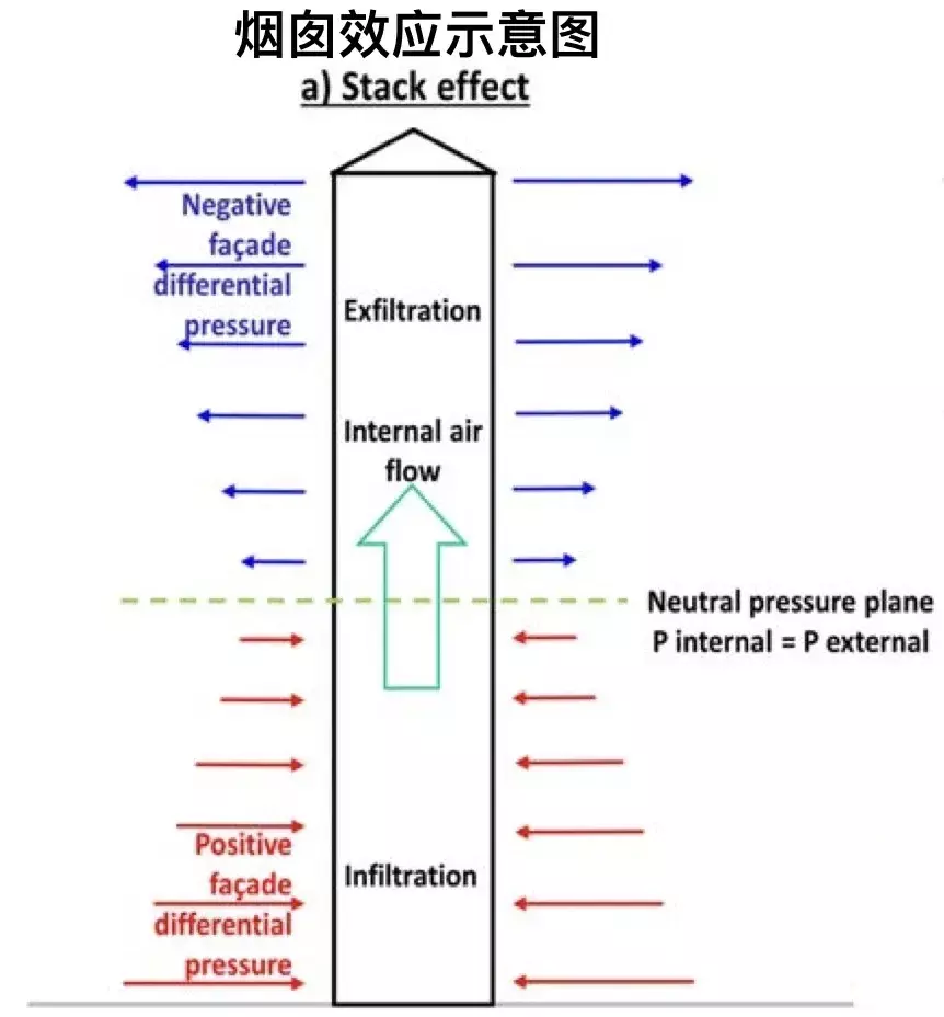 图源:Mijorski, S., & Cammelli, S. (2016). Stack effect in high-rise buildings: A review. International Journal of High-Rise Buildings, 5(4), 327–338.