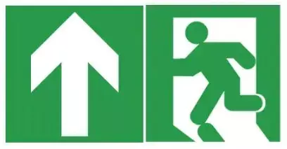 ●指示安全出口在前方,这种标志要面向疏散方向设置,一般悬挂在大厅、疏散通道上方等。