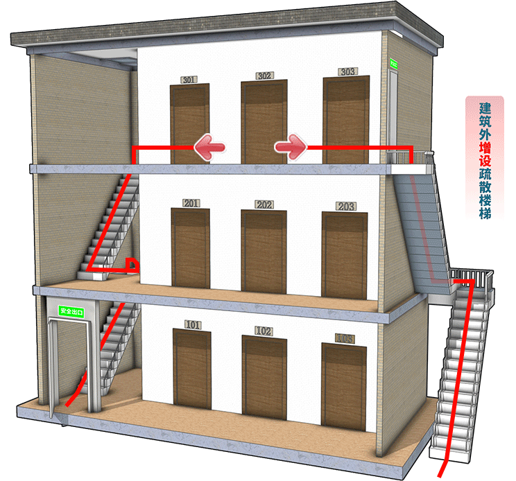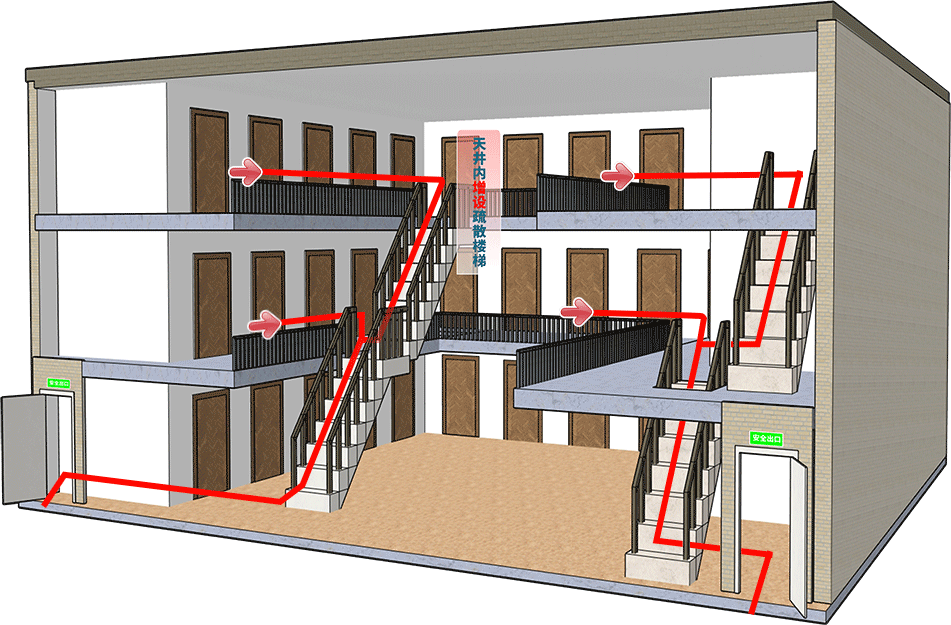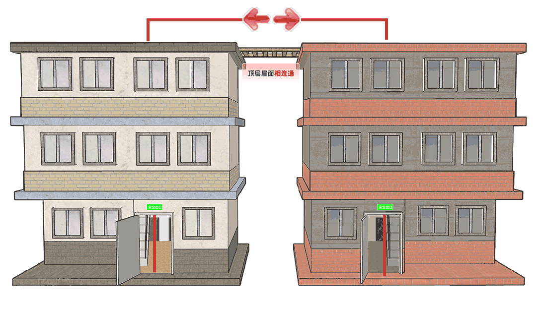 ◆楼顶开设疏散门,紧急时供人员逃生或等待救援。