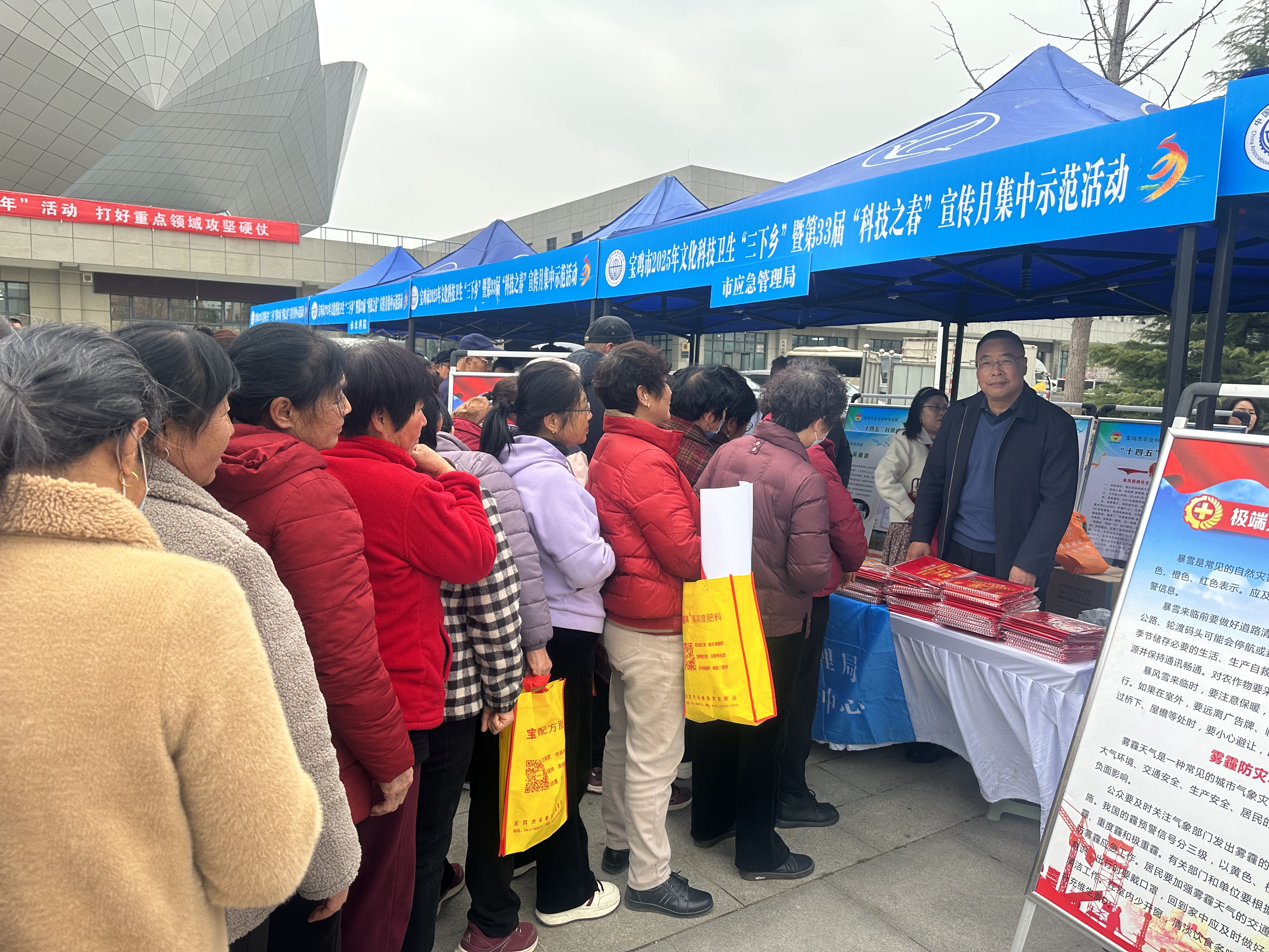 3月11日,市应急管理局党委委员副局长刘昌炳,带领灾防科和减灾救灾中心业务干部5名,前往扶风参加了2025年宝鸡市文化科技卫生“三下乡”暨第33届“科技之春”宣传月集中示范活动。