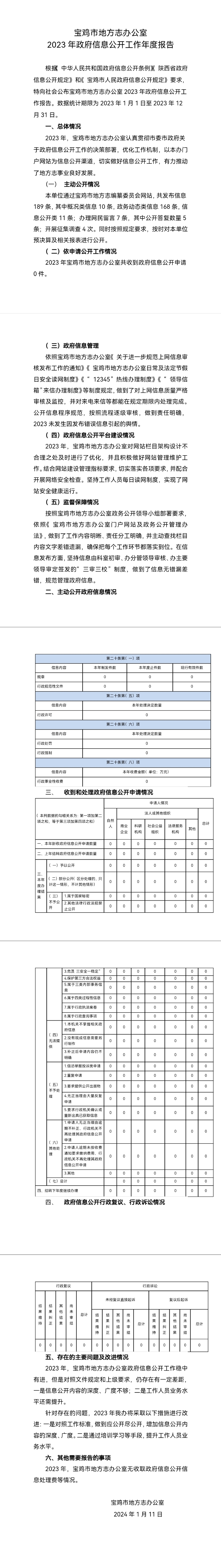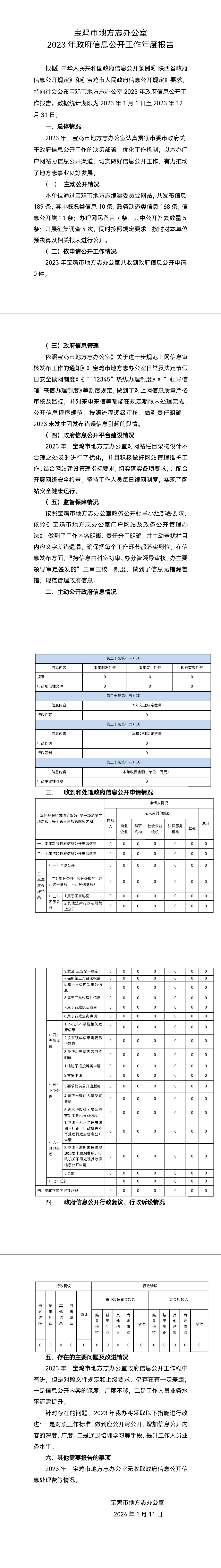 宝鸡市地方志办公室2023年政府信息公开工作年度报告