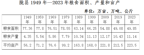 经济总量跃上新台阶。有统计数据记载,1952年陇县经济总量仅有307万元;到1978年全县经济总量为3903万元,是1952年的12.7倍,年均增长10.3%。上世纪八十年代,全县围绕加强农业基础地位、大力发展多种经营和县乡工业的工作思路,经济总量规模扩张,1986年全县生产总值突破亿元,达到10498万元,是1952年的34.2倍,年均增长10.9%。九十年代末到二十一世纪初,全县以经济建设为中心,产业结构调整为主线,壮大奶畜、烤烟、果品、建材四大支柱产业,培育旅游和非公经济两个新的经济增长点,国民经济全面发展,综合实力持续增强。2004年全县生产总值突破10亿元,达到11.9亿元,是1986年的11.3倍,年均增长14.4%。2005年至2020年全县加快经济结构调整步伐,整合特色优势资源,着力做大做强骨干产业,充分发挥龙头企业的带动和辐射作用,实现了经济总量的跨越发展。2008年全县生产总值突破20亿元,达到22.2亿元;用三年时间增加10亿元,2011年突破30亿元,达到36.7亿元;2013年突破50亿元,达到50.8亿元;2017年突破80亿元,达到84.8亿元;2021年突破百亿元大关。