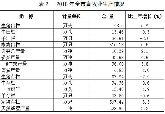 全年畜牧业生产形势稳定,主要畜牧产品产量、畜禽存栏保持平稳。