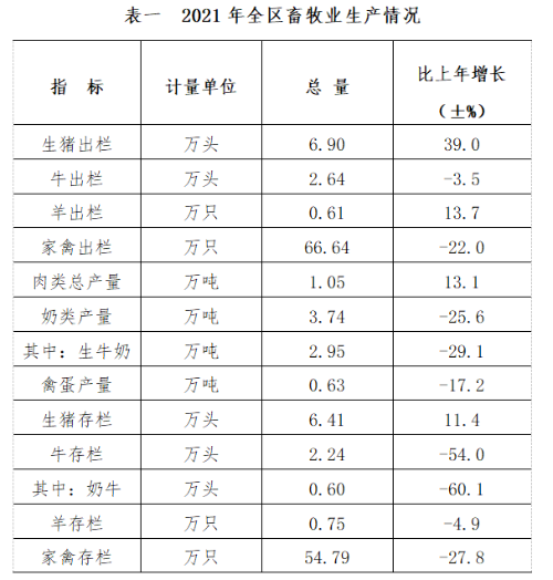 全年全区化肥实物施用量15.7万吨,较上年略有下降。年末耕地灌溉面积4234.4万亩。