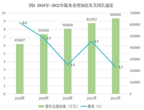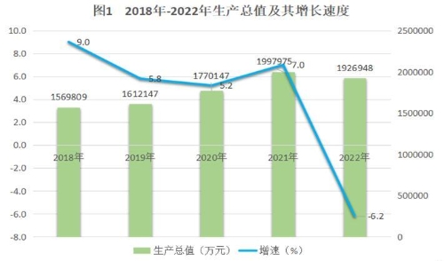 初步核算,2022年全县生产总值完成1926948万元,同比下降6.2%。其中:一产增加值340295万元,同比增长4.3%;二产增加值932509万元,同比下降15.1%;三产增加值654144万元,同比增长3.3%。