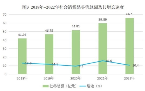 全县实现社会消费品零售总额66.1亿元,同比增长10.4%。按行业分,批发业商品销售额增长10.9%,零售业商品销售额增长11.3%,住宿业营业额下降9.9%,餐饮业营业额增长7.2%。批发和零售业通过公共网络实现的商品销售额增长27.4%。