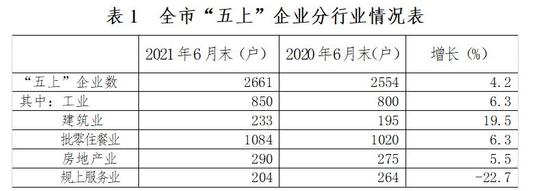 一是“五上”企业净增数在全省相对靠后。截至6月末,全市“五上”企业在库数较2020年末净增20户,其中工业净增27户;建筑业净增13户;批零住餐业净增37户;房地产业净增11户;规上服务业退库较多导致净增为-68户。从全省净增情况来看,落后于西安、榆林、延安、咸阳、汉中、铜川,在全省11个地市中排名第7位。